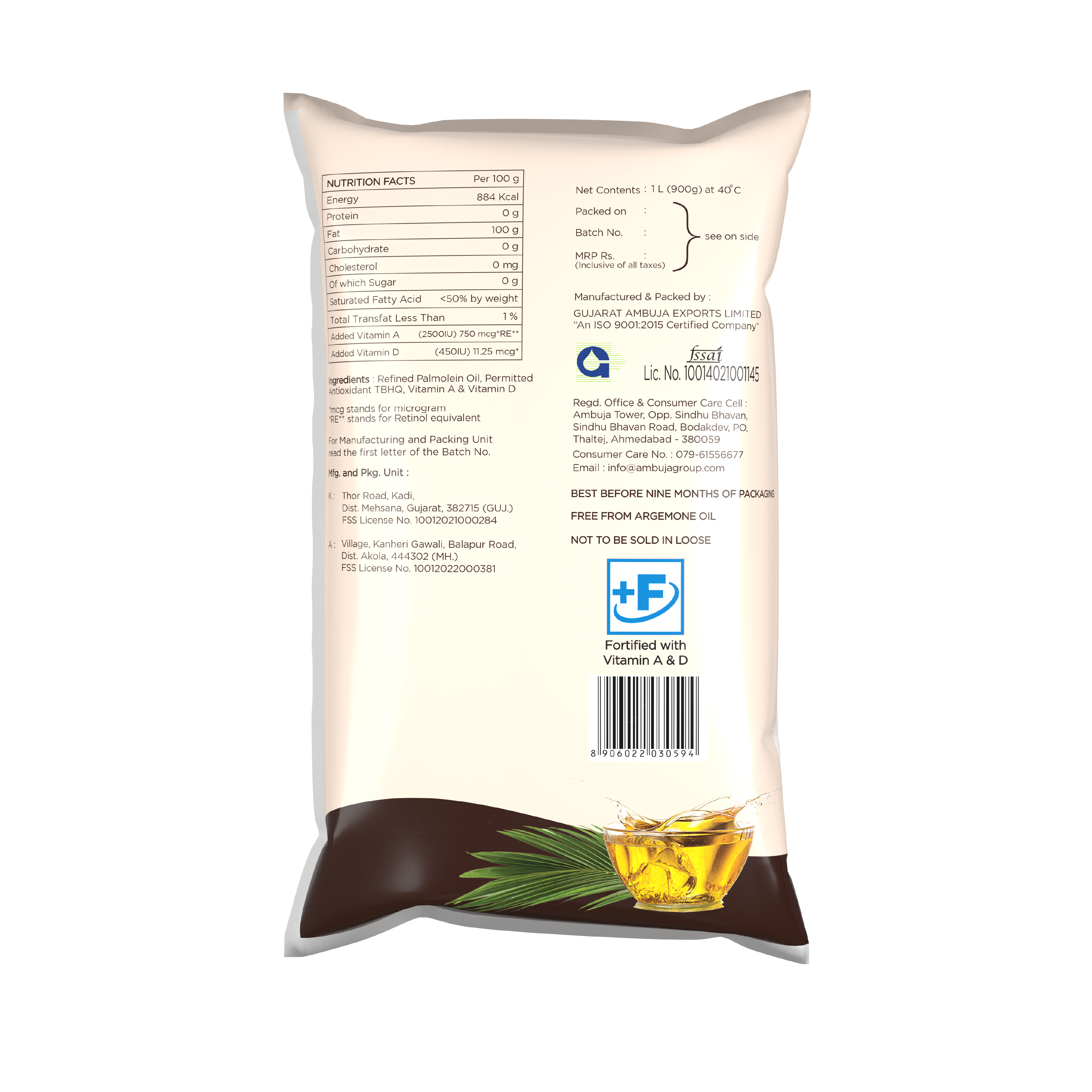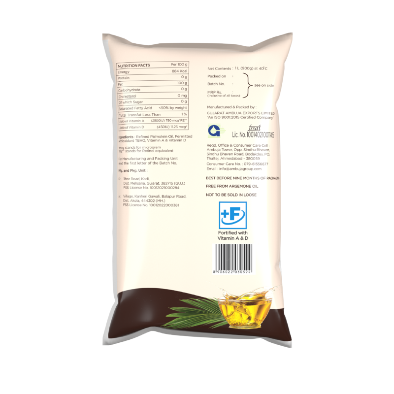 Ambuja Gold Refined Palmolein oil is made from special technique of crystallization of Palm Oil and is used for cooking as well as baking purpose. Ambuja gold Refined Palmolein oil is considered neutral in its effects on cholesterol. Balance of Saturated fats and Unsaturated fats in ambuja gold Refined Palmolien Oil gives rich taste and does not have incremental risk of cardiovascular risk.